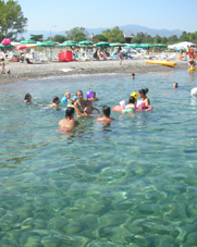La SPIAGGIA: Lido privato, attrezzato. La spiaggia è di sabbia e ghiaia. 1 ombrellone, 1 lettino e 1 sdraio per camera o appartamento. Ombrellone in prima fila con supplemento di € 30 nei periodi F e G, negli altri periodi riservato all'hotel. Accesso diretto dal villaggio, riservata ed attrezzata con ombrelloni, sdraio e lettini, pedalò e canoe, beach volley. Si organizzano su richiesta e prenotazione corsi di SUB, WINDSURF, KITE. |