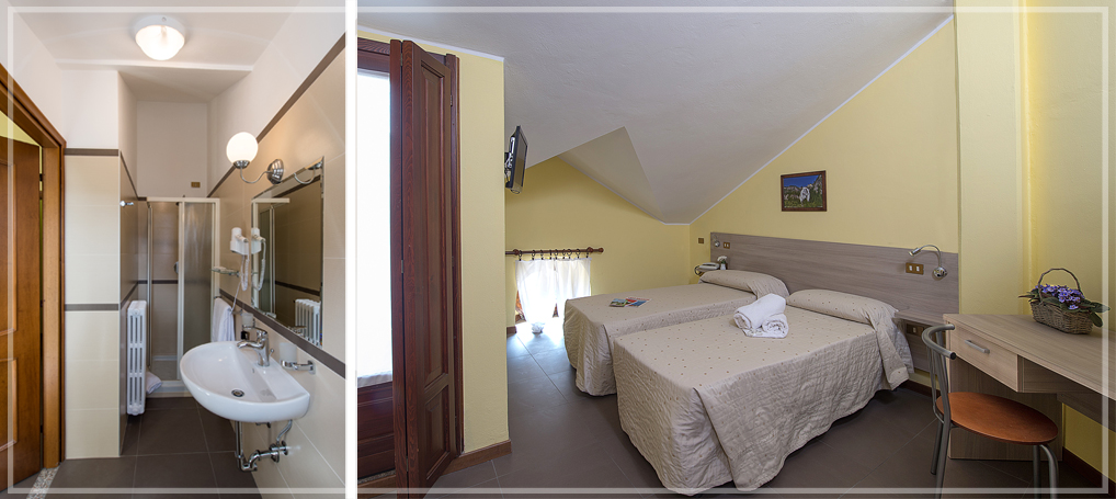 Vi sono a diposizione 31 camere tutte dotate di bagno privato con doccia e WC, LED TV con canali digitali e satellitari, telefono diretto, connessione internet wireless gratuita, phon, cassaforte, ventilatore per il raffrescamento e riscaldamento autonomo. Alcune camere hanno il balcone/terrazzo privato con vista sulle montagne circostanti o sulla cava di Candoglia, da dove si estrae il marmo per il Duomo di Milano.