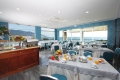 La sala per la prima colazione a buffet ed il ristorante, con la sua cucina mediterranea