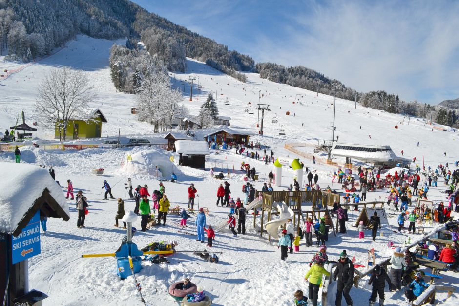Uno dei maggiori vantaggi del comprensorio sciistico di Kranjska Gora è la Spiaggia di neve, ubicata tra gli hotel e le piste da sci.