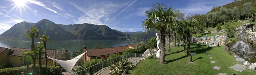 Situato direttamente sulle sponde italiane del meraviglioso lago di Lugano, nel cuore di uno straordinario parco di 30.000 mq, dispone di 111 ville, suite ed appartamenti tutti dotati di cucina e di un´impareggiabile vista sul lago, in grado di offrire una vacanza veramente unica in un ambiente familiare. A disposizione degli ospiti vi sono: circa 3.000 mq di spiaggia privata, piscina "Relax", parco acquatico Fun Pool, Club Bambini, parco giochi, Spa e Cento Benessere con piscine, vasca idromassaggio, sauna, biosauna, bagno a vapore, solarium e cabina aromatica, trattamenti estetici, massaggi, padiglione per la meditazione, Centro Fitness, campo da beachvolley, parete da arrampicata, sport acquatici, attività sportive e tre ristoranti à la carte con cucina mediterranea.