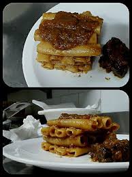 Primo: Lasagna classica a base di sugo di ragù, polpettine, mozzarella.